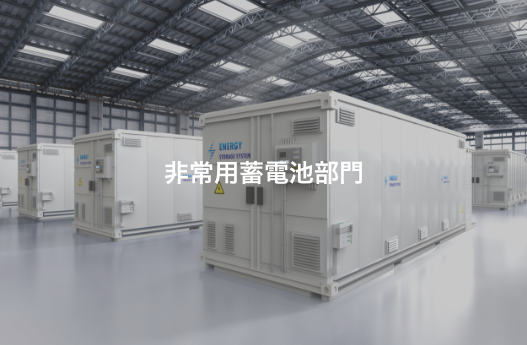 社会全体の電力安定と防災強化を目指した「蓄電所構築事業」と、もしもの時に人命と社会インフラを守る「非常用蓄電池事業」です。